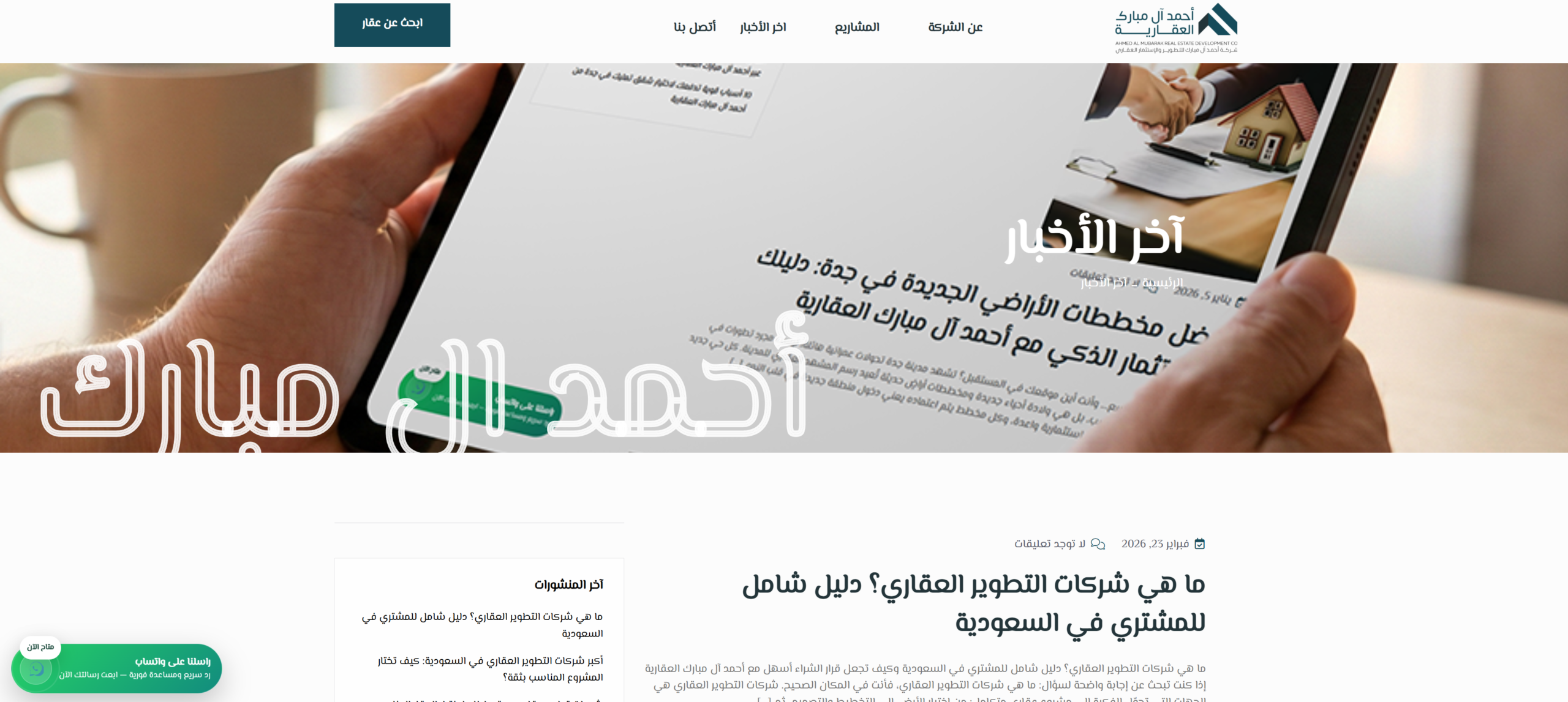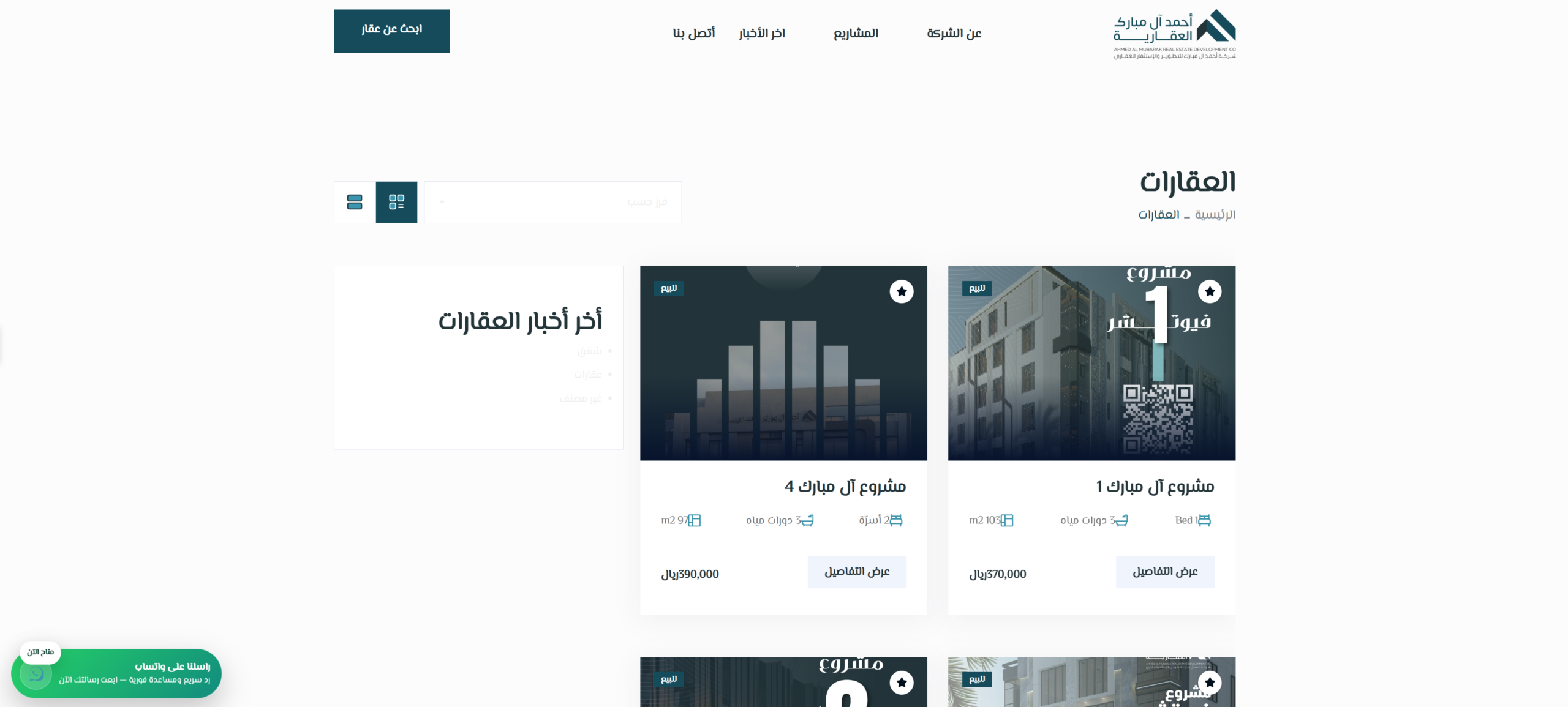 نوع الموقع: موقع عقاري (مشاريع + عقارات + أخبار/مقالات)